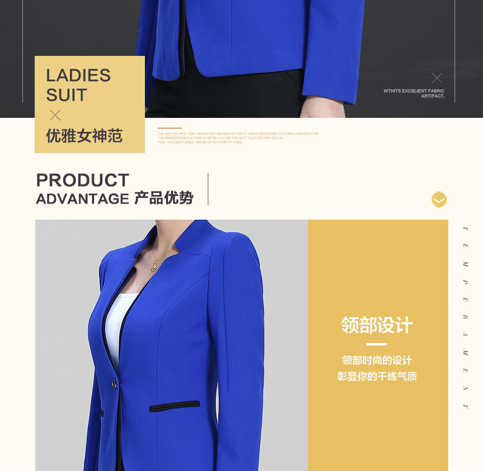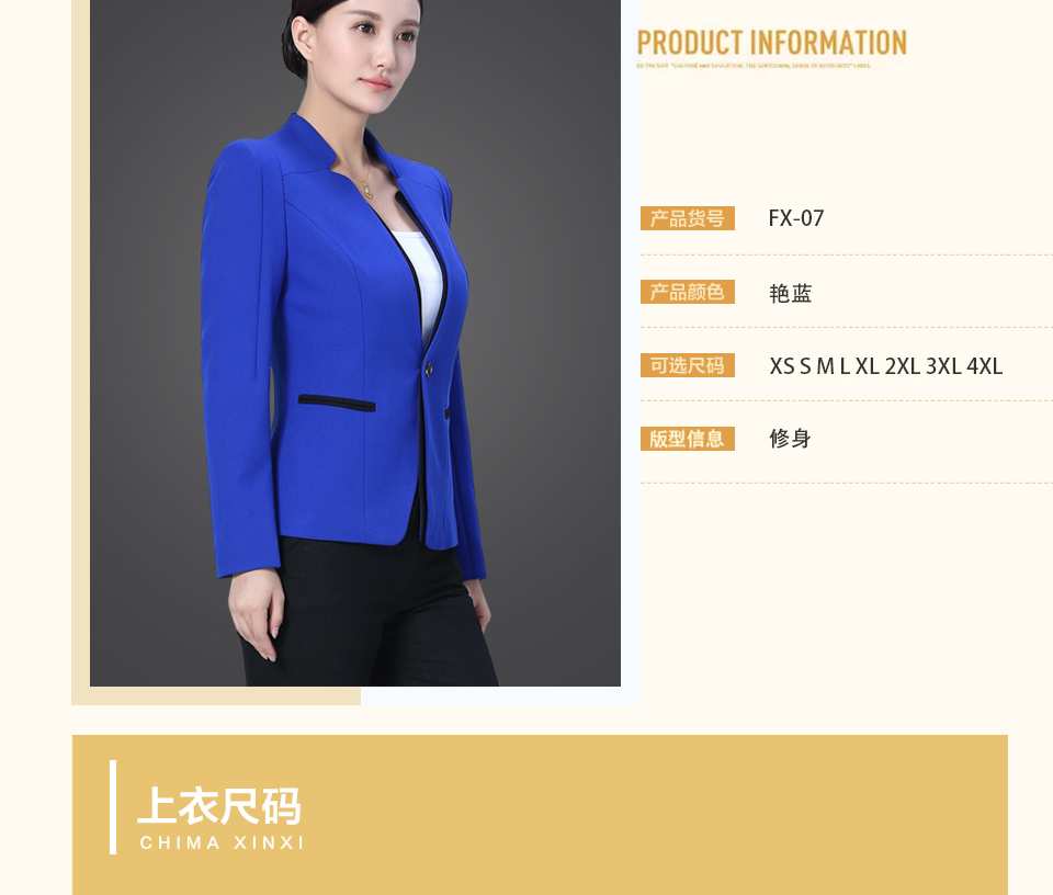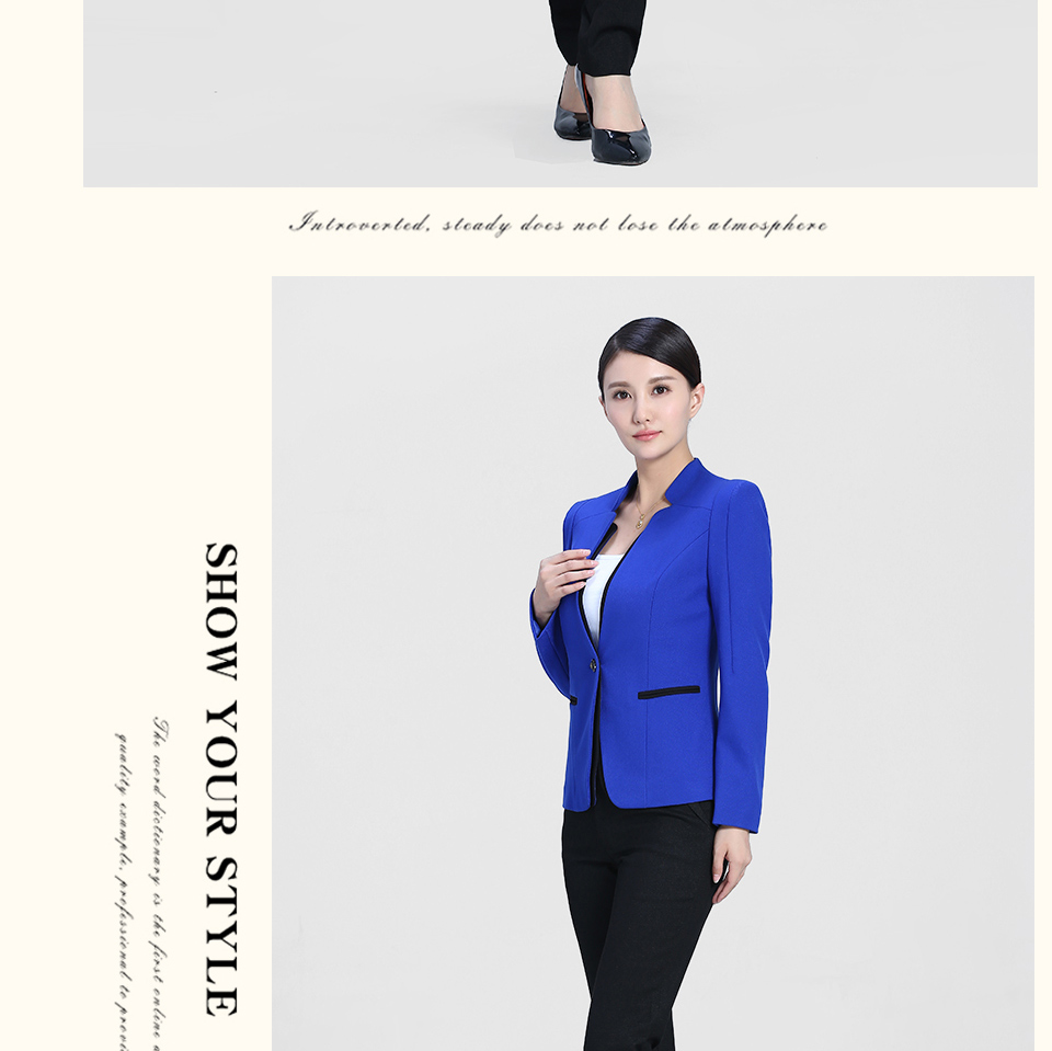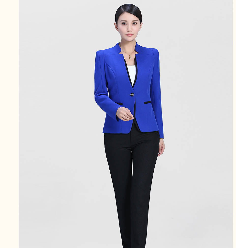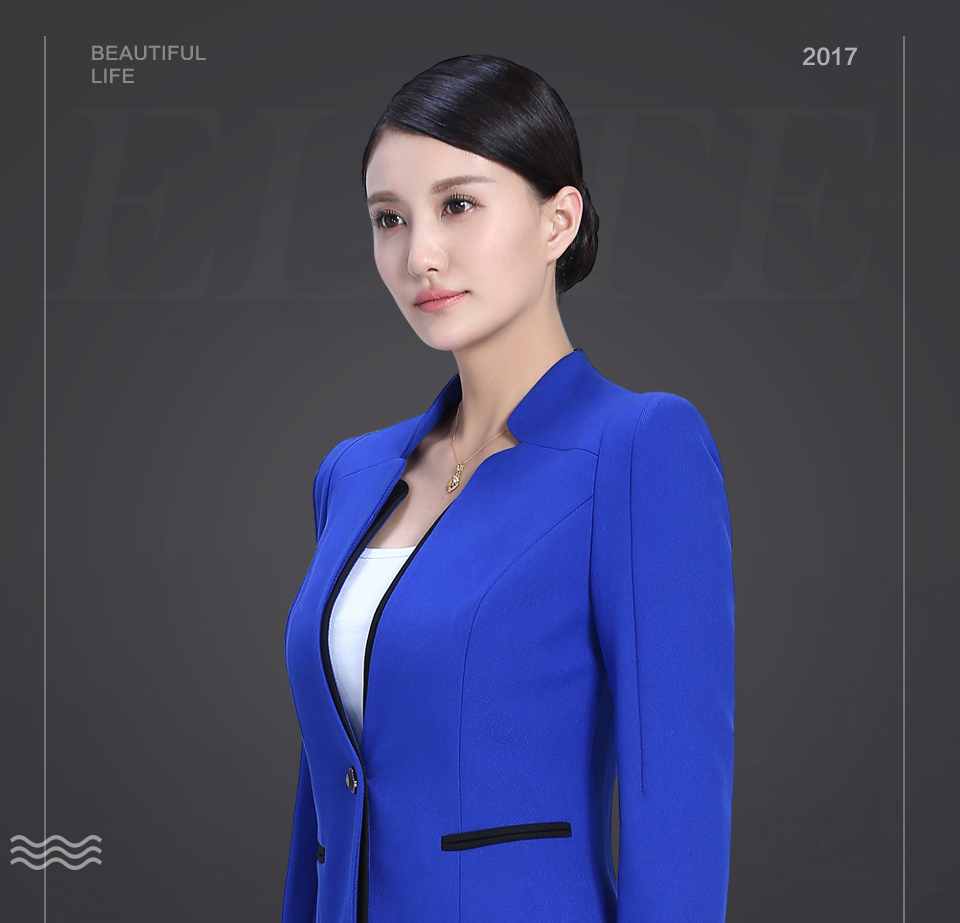 相关靓蓝色修身款时尚职业套装FX15推荐