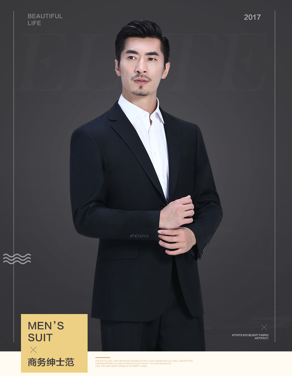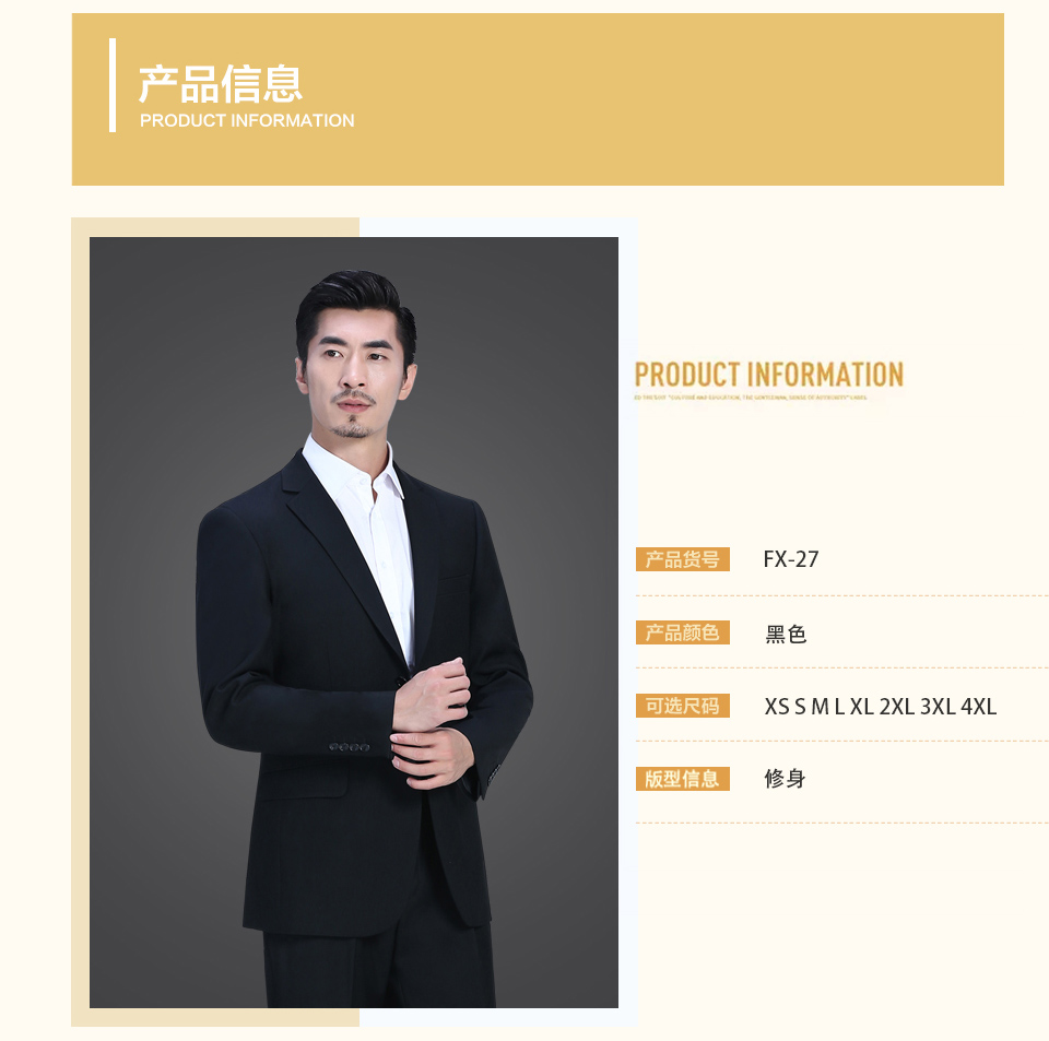相关小平驳领黑色男职业套装FX002推荐