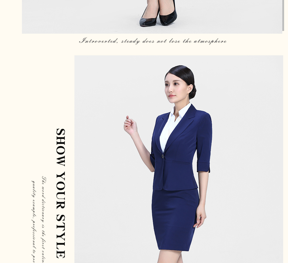 相关时尚靓丽宝蓝色西服职业装FX26推荐