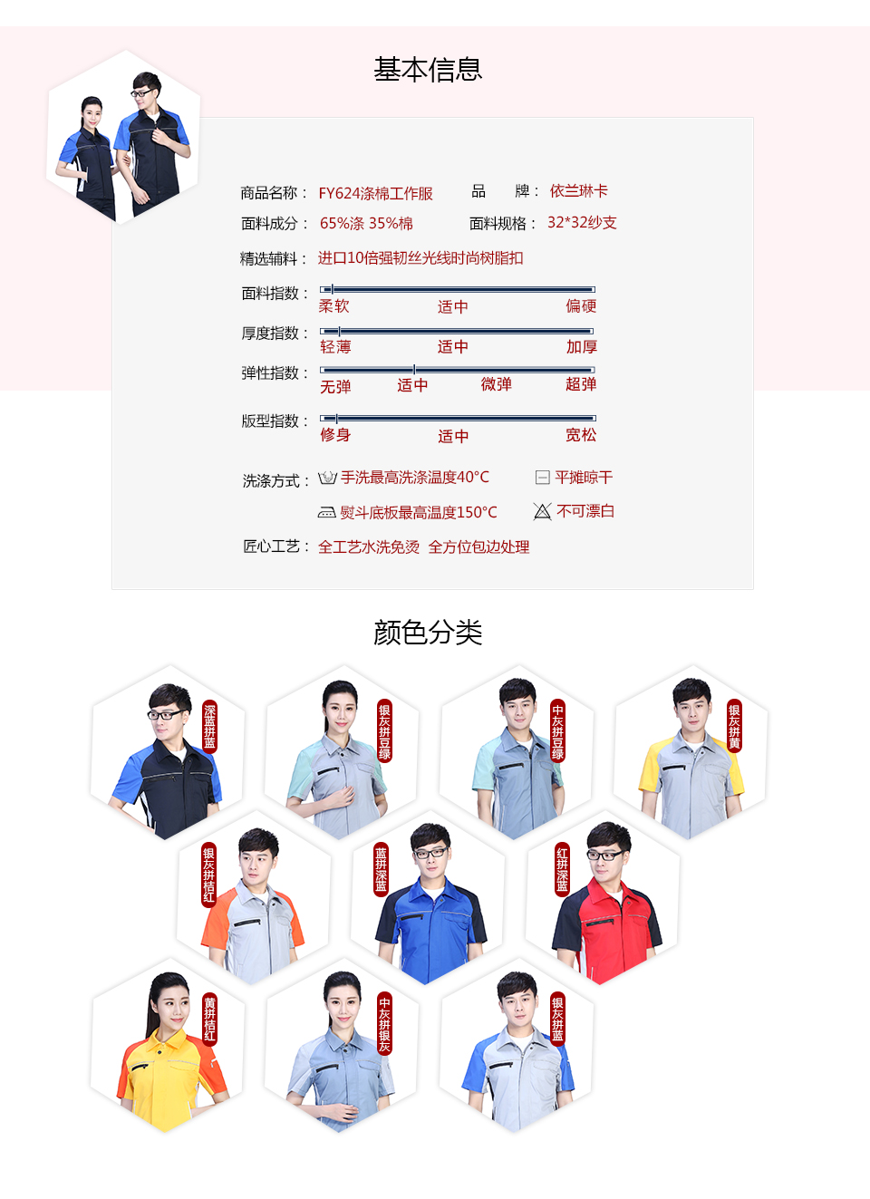 相关涤棉撞色拼接涤棉细斜短袖工作服FY624推荐