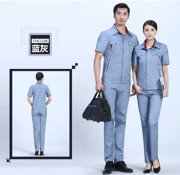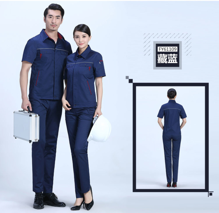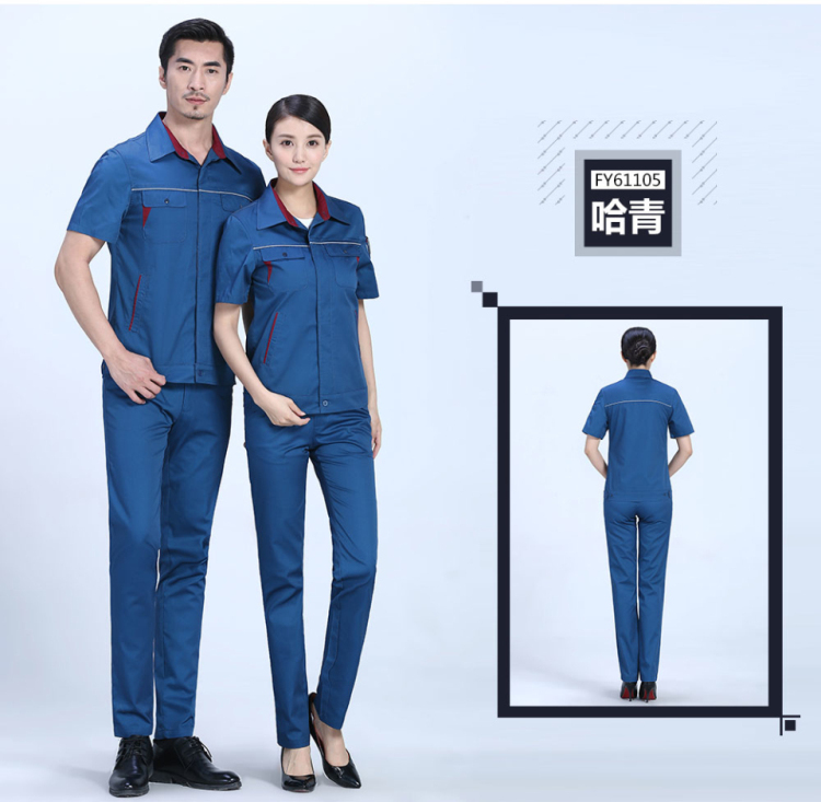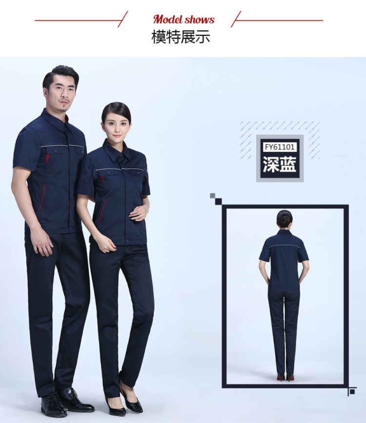 相关夏季时尚合体涤棉细斜短袖工作服FY611推荐