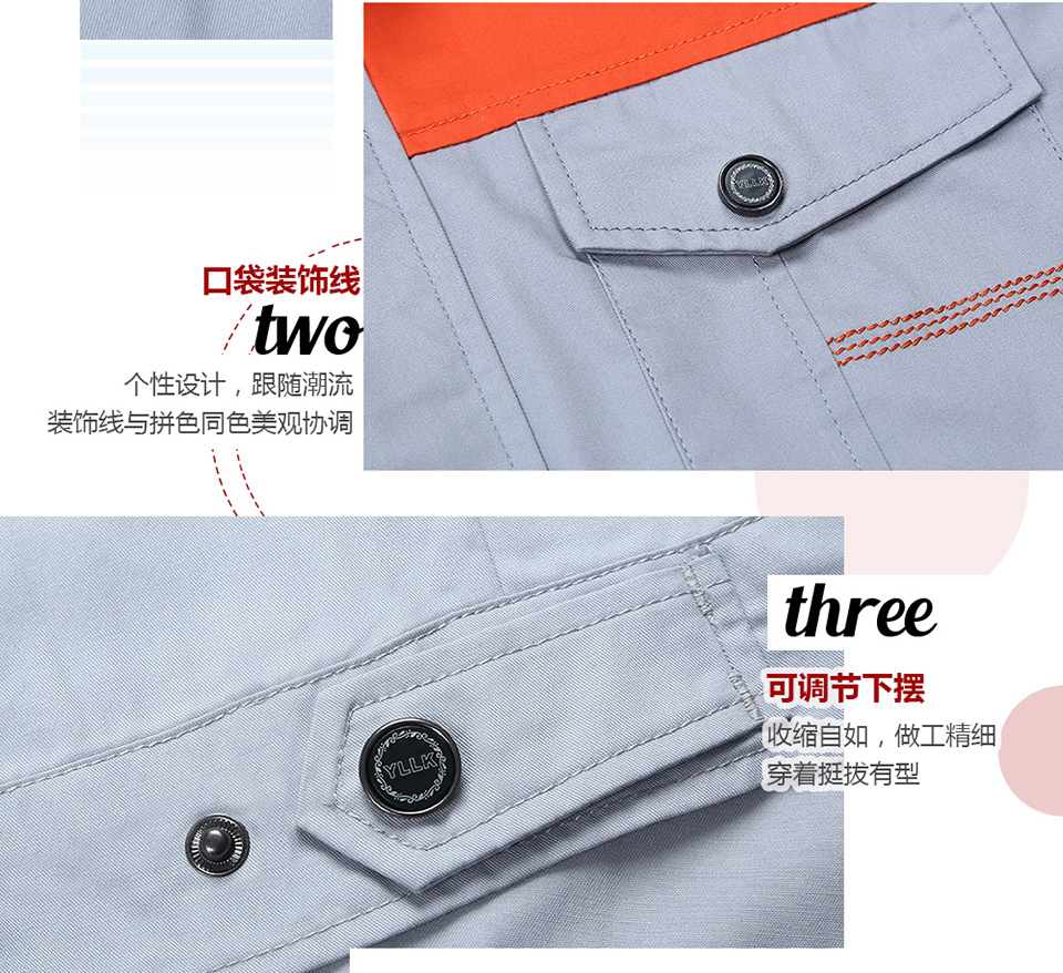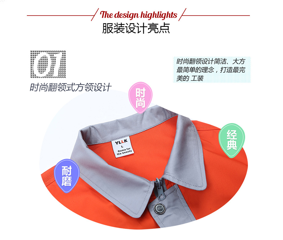 相关时尚桔色拼接涤棉细斜短袖工作服FY617推荐